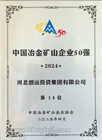 近日,中國冶金礦山企業(yè)協(xié)會發(fā)布“2024年中國冶金礦山企業(yè)50強”榜單,河北創(chuàng)遠(yuǎn)投資集團有限公司憑借卓越綜合實力位列第14名,展現(xiàn)出強勁的發(fā)展勢頭。